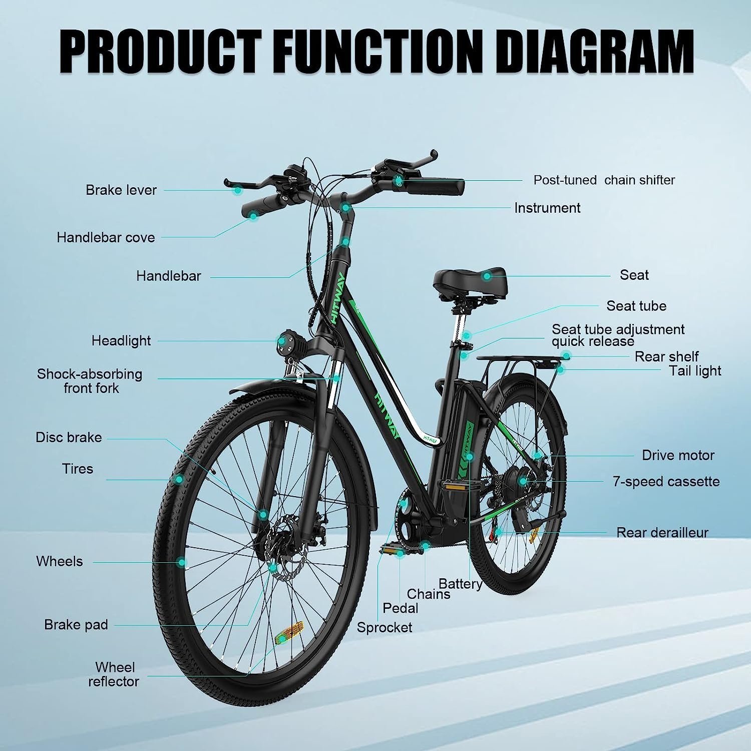 🚴‍Remarque : les vélos électriques HITWAY sont pré-assemblés à 85 %. Le manuel d’utilisation est disponible en 7 langues : anglais, français, allemand, italien, espagnol, polonais et néerlandais. Si vous avez des questions (entretien, pièces de rechange, assistance au montage, etc.), veuillez contacter notre service client pour obtenir de l’aide, nous fournissons un support technique 24h/24 et vous fournissons une solution satisfaisante,
