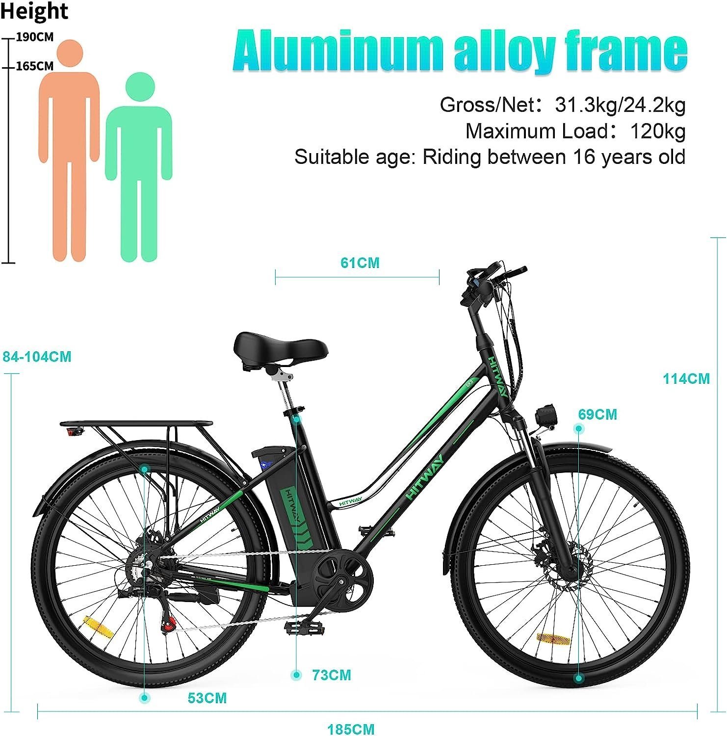 HITWAY Vélo électrique, 26” vélos électriques Femme,Moteur 250W,Shimano 7 Vitesses,E-Bike avec Batterie au Lithium Amovible 36V 11,2Ah 35-90km Ebike
