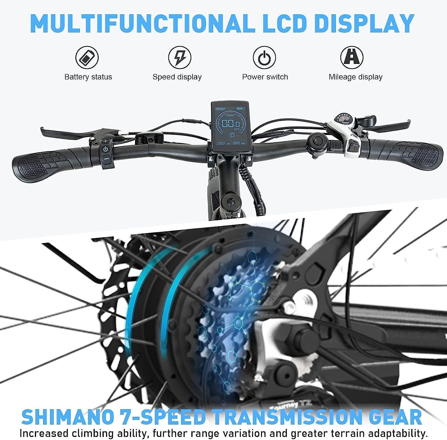 ✔ Mode de conduite avancé – Ce vélo électrique est équipé de 2 modes d’accélération ( mode d’assistance, mode de conduite normale). Il est également équipé d’un système Shimano à 7 vitesses, qui améliore sa capacité d’escalade et son adaptabilité aux différents terrains. De plus, il est équipé du mode Walk à 6 km/h qui permet de pousser le vélo facilement et sans stress.